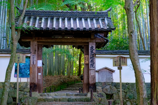 地蔵院の参道は竹林に囲まれており、「竹の寺」の通称で知られています。