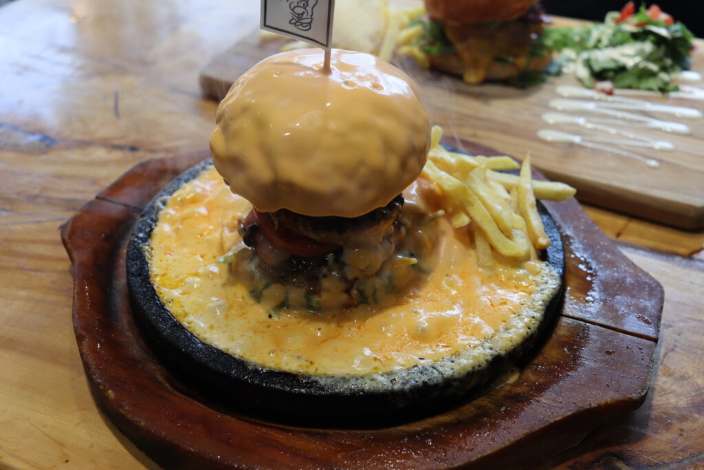 SNSで人気のチーズが滴れるフォトジェニックバーガー。
