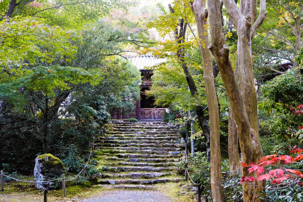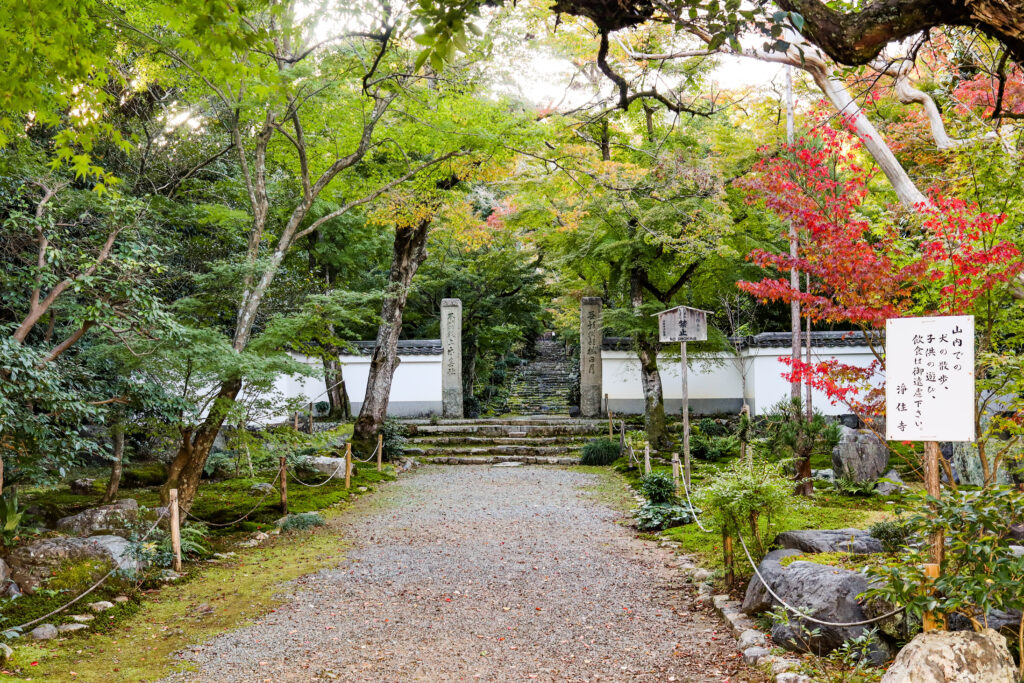 浄住寺の境内はもみじに囲まれ、こじんまりした寺院ですので、紅葉シーズンは穴場スポットとなっています。