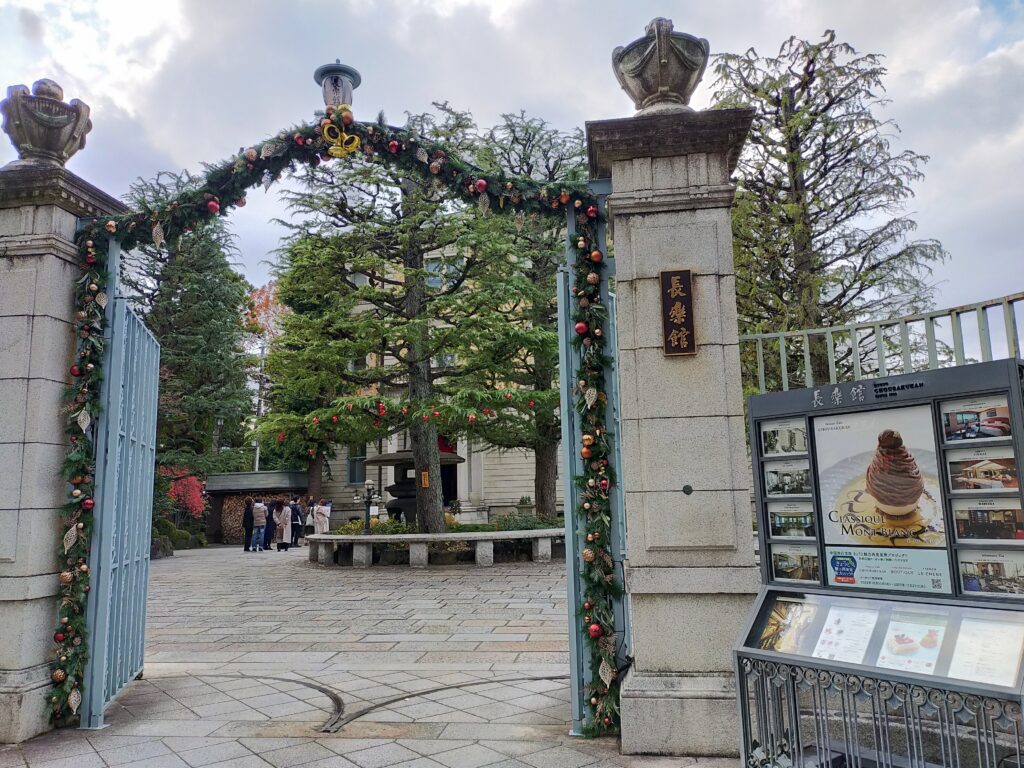 クリスマスシーズンの洋館と人力車。和と洋の素敵な融合