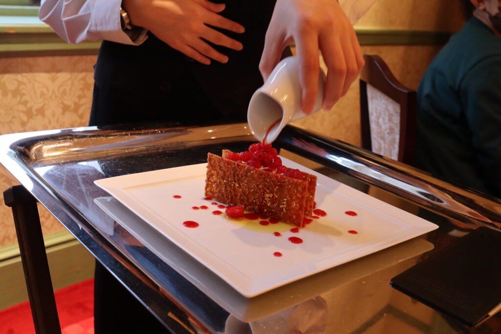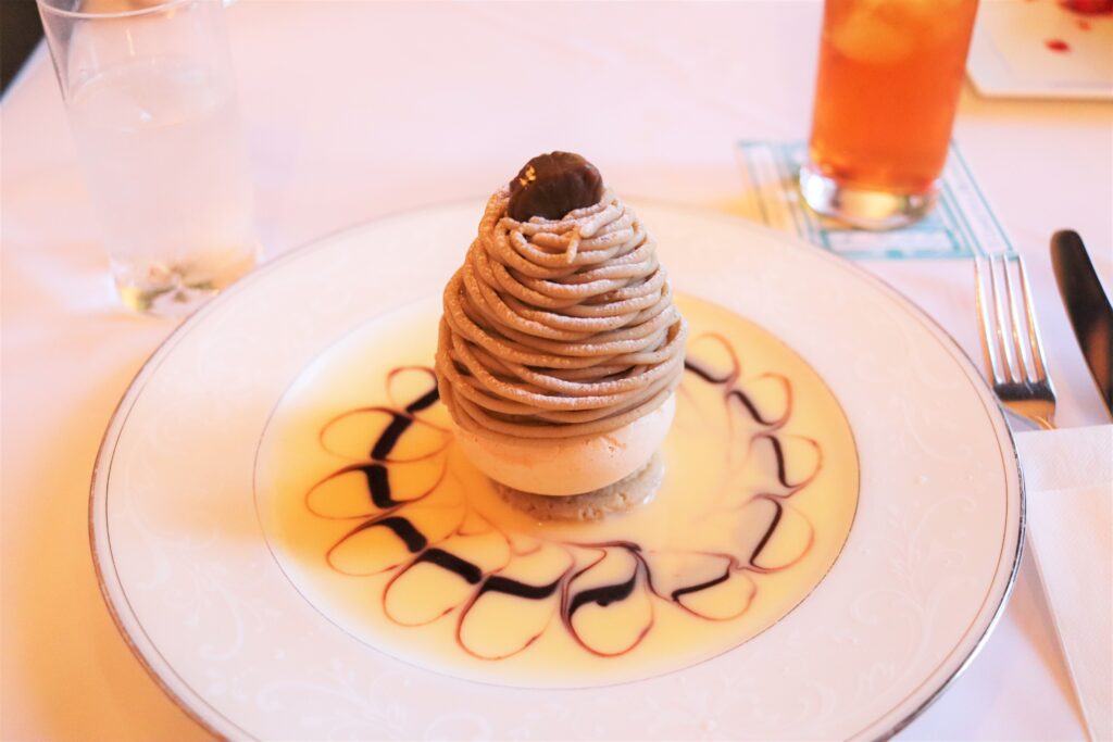 デザートメニュー「ヌガーグラッセフランボワーズ」と「クラシックモンブラン」を注文