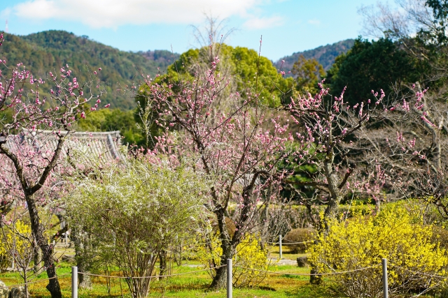 隨心院の梅園は、3月中旬から3月末に見ごろを迎えます。