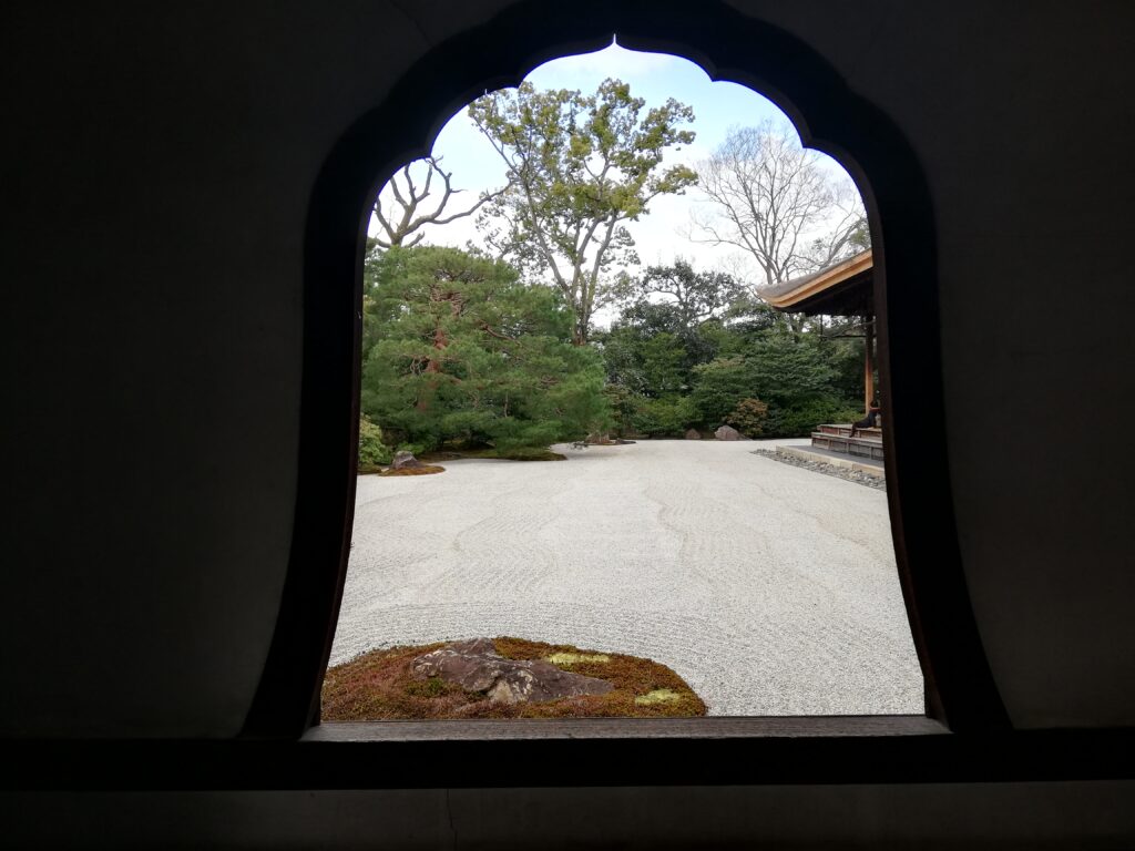 芬蛇院(ふんだいん)の丸窓と庭