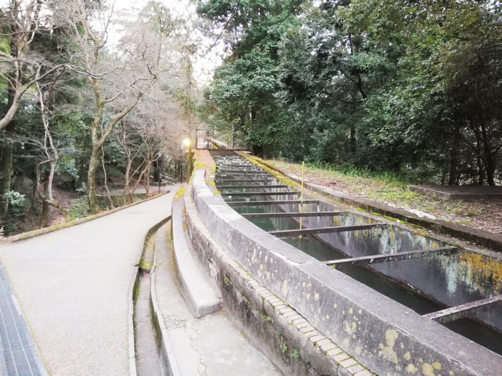現在も上水道の水路として使用されており、脇にある階段を登ると水の流れを見ることができます。