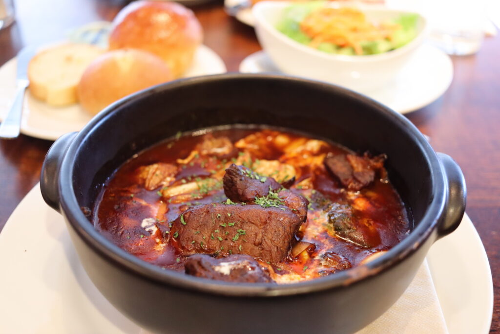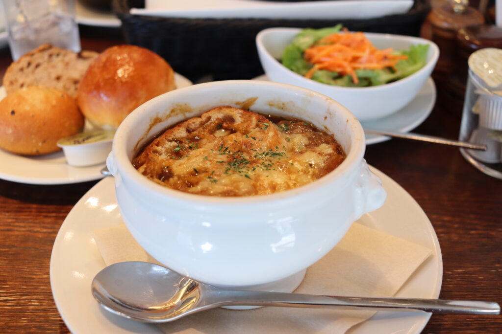 特におすすめは、三条河原町店、北山店、寺町店、府庁前店で注文ができる、「オニオングラタンスープ」と「牛バラ肉のビーフシチュー」。