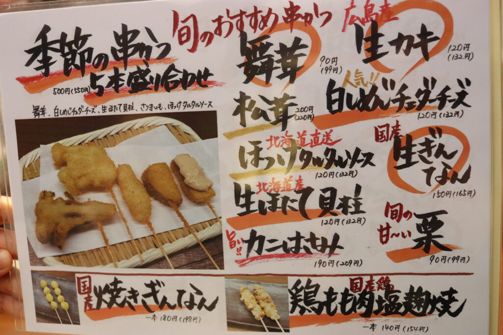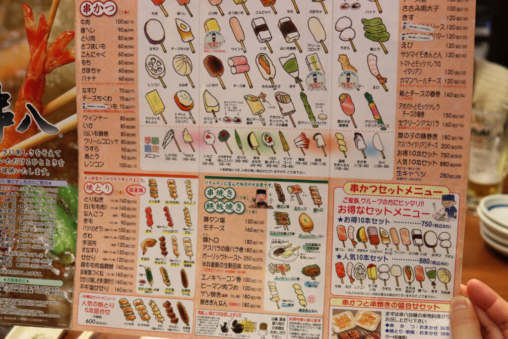 串八の魅力は何といっても通常メニューの串カツの種類の豊富さとコスパの良さ!