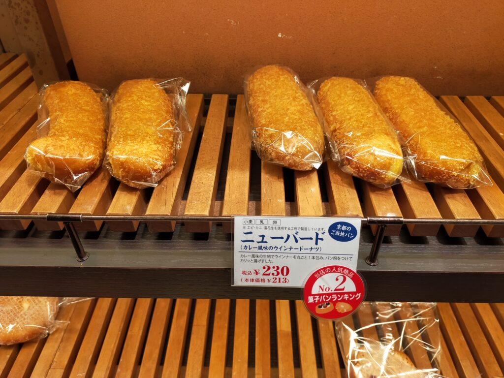 カレー風味の生地の真ん中に棒状に切ったハムが挟まれていて、それにパン粉をつけて揚げたパンですが、古くからある京都のパン屋さんでは見かけることがあります。