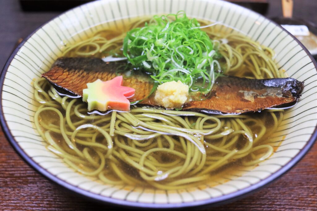 京都の名物にしんそば。これを茶そばで楽しめる「祇園 おくおか」。