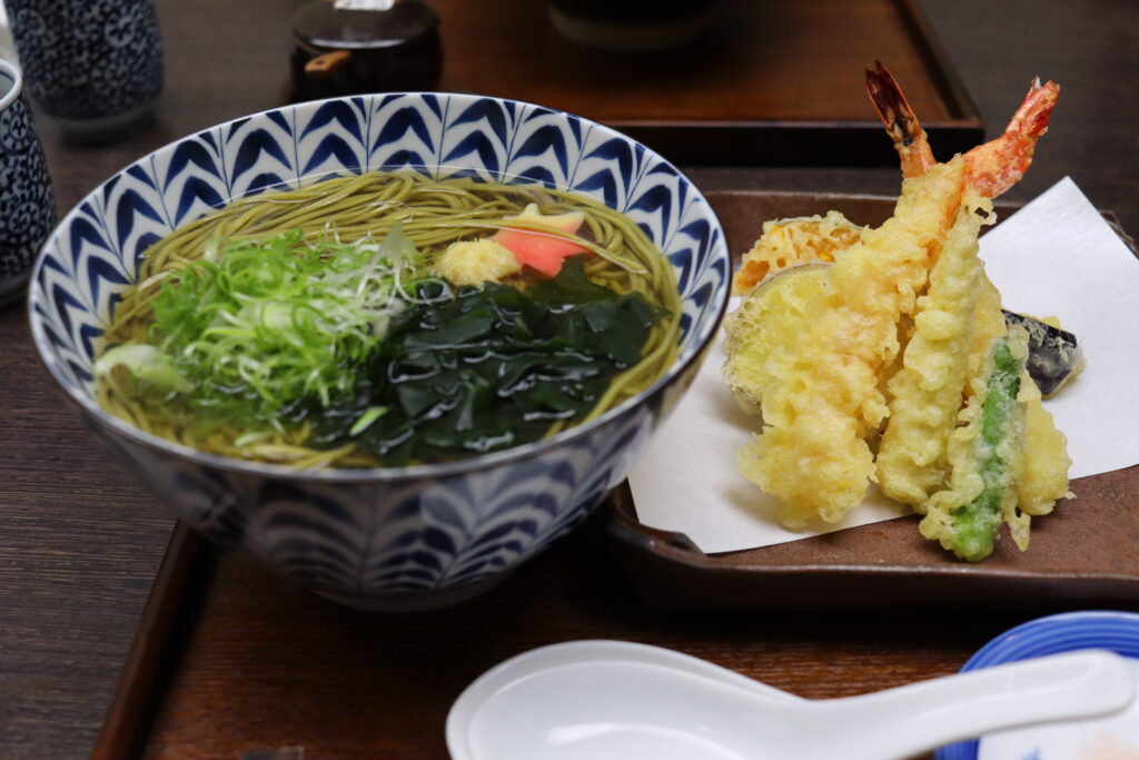 天ぷらそばは、さすが本格日本料理店。さっくさくの衣でクオリティの高い天ぷらが楽しめます。