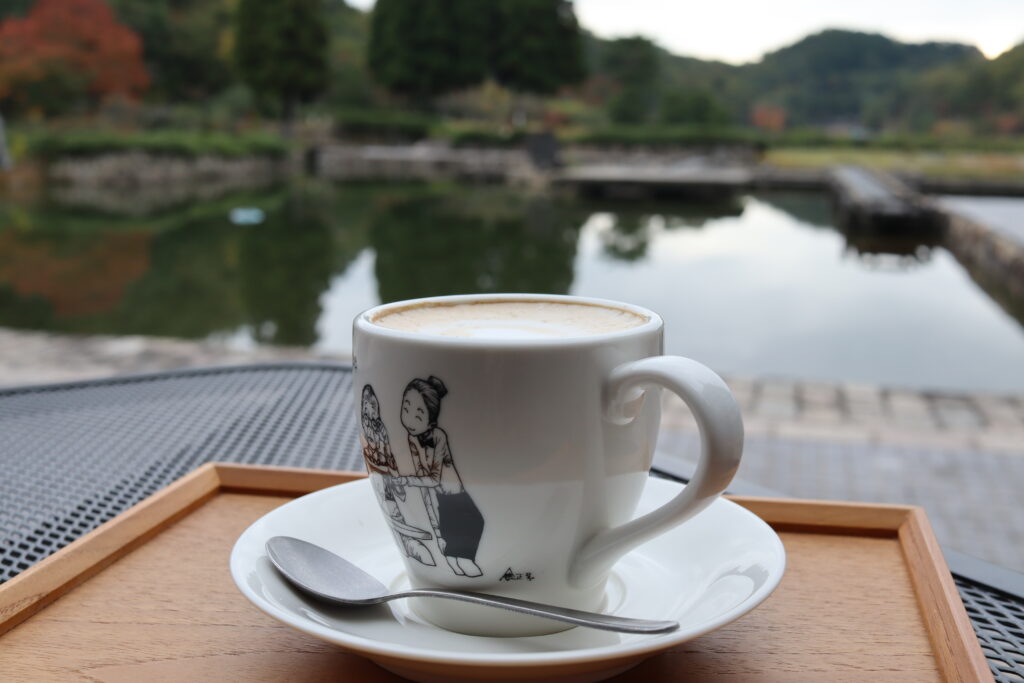広いお庭には池があり、山々があり、自然を眺めながら飲む珈琲はとてもリラックスできます。