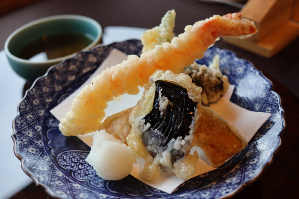 湯葉いそべ揚げと海老 季節の野菜天ぷら。
